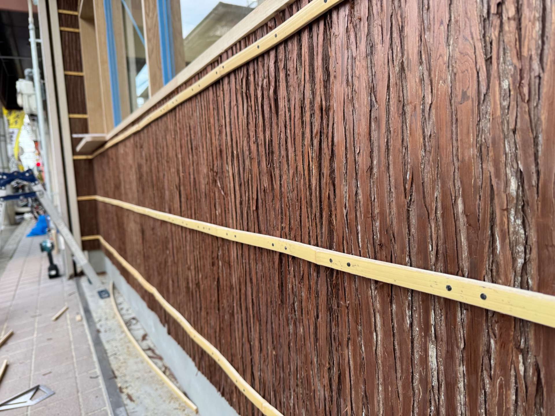 外壁には杉皮を使用し、